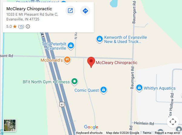 At McCleary Chiropractic, our mission is to serve the families of Evansville, Indiana with honest, patient-centered care. We strive to create a welcoming environment where people feel heard, supported, and confident in their path to better health. Through chiropractic adjustments, soft tissue therapy, and holistic care, we aim to restore movement, relieve pain, and help our community live healthier lives.
